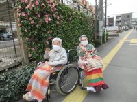 玄関先の陽の当たる場所でストレッチや日光浴を楽しまれていらっしゃいました。