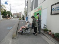 陽気も暖かくなってきたので、お元気な方は、施設が見える範囲をお散歩していただいてます。