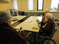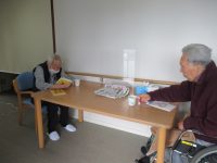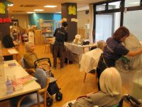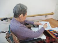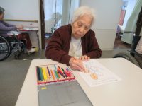 皆様、新聞を読んだり、ぬり絵を楽しんだり、若い頃の思い出話をしたり、食事のエプロンをたたんでくださったり。
