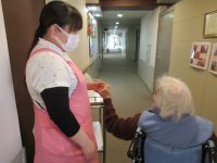 施設戻ると、仲良しの入居者様や職員とお話を楽しんでいらっしゃいました。
