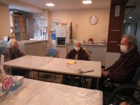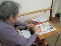 ぬり絵、おしゃべり、新聞を読んだりされていらっしゃいました。