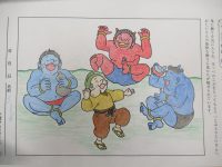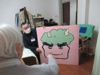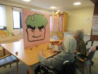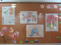 施設内に飾ってあるぬり絵を2月バージョンにかえました。