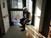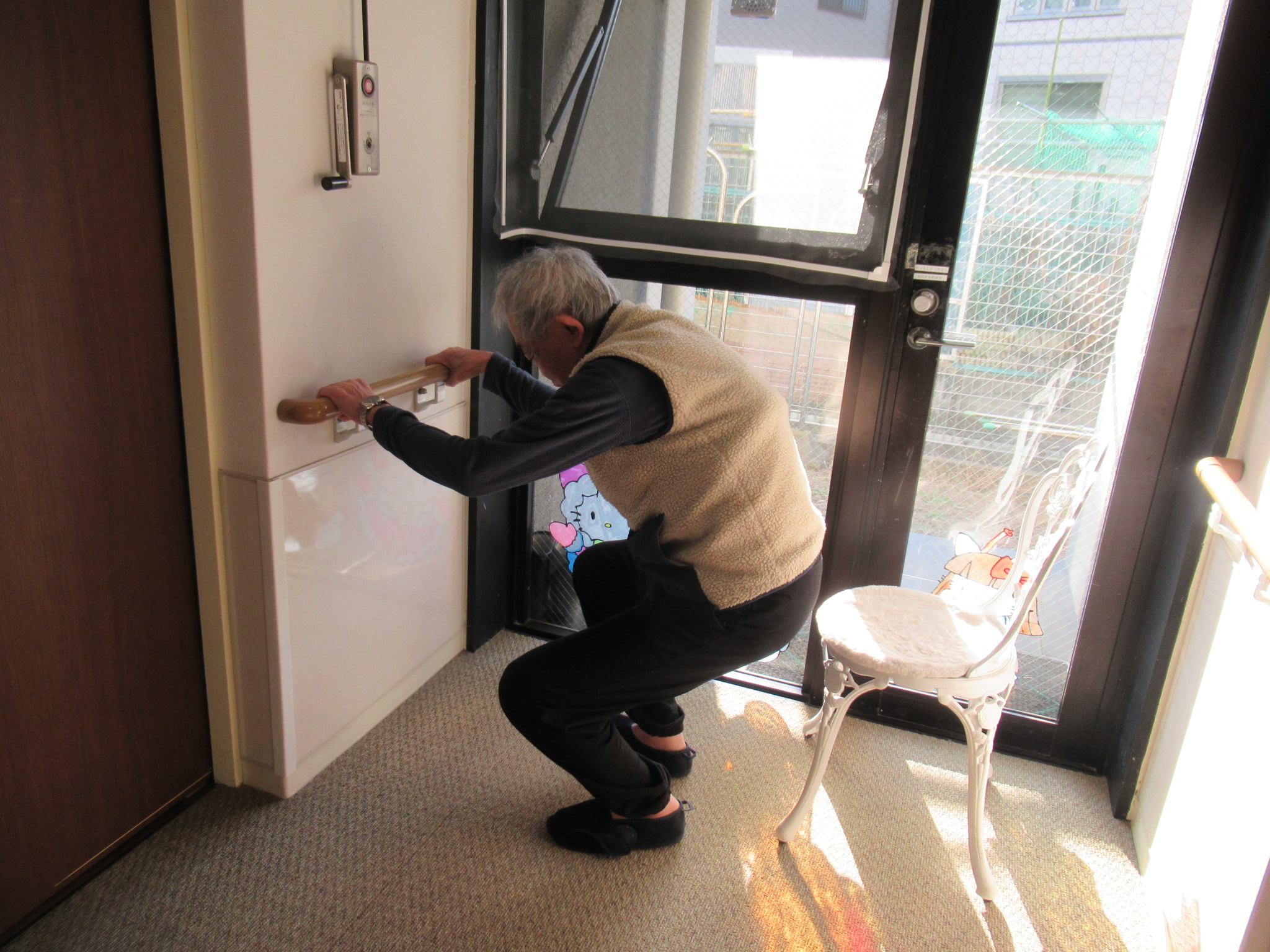 廊下をご自分のペースで歩いたり、手すりを使って背中を伸ばしたり、屈伸したりします。