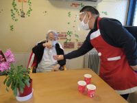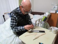 ハンドベルは、寝たきりの方のお部屋でも行いました。