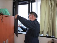 営繕担当の職員が、網戸を張り替えたり、洗ったりしました。