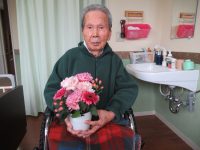 週末にご家族様が会いに来てくださり、お花・カード・写真などのプレゼントを受け取り喜んでいらっしゃいました。