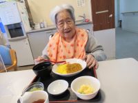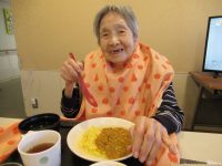 ランチは、ドライカレー・ス-プ・花野菜サラダ・フルーツでした。