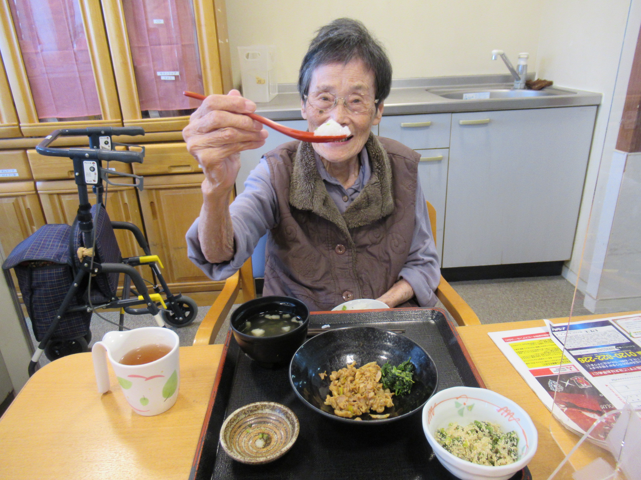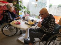 秋晴れだったので、ロビーで仲良しさんがランチをしました。