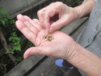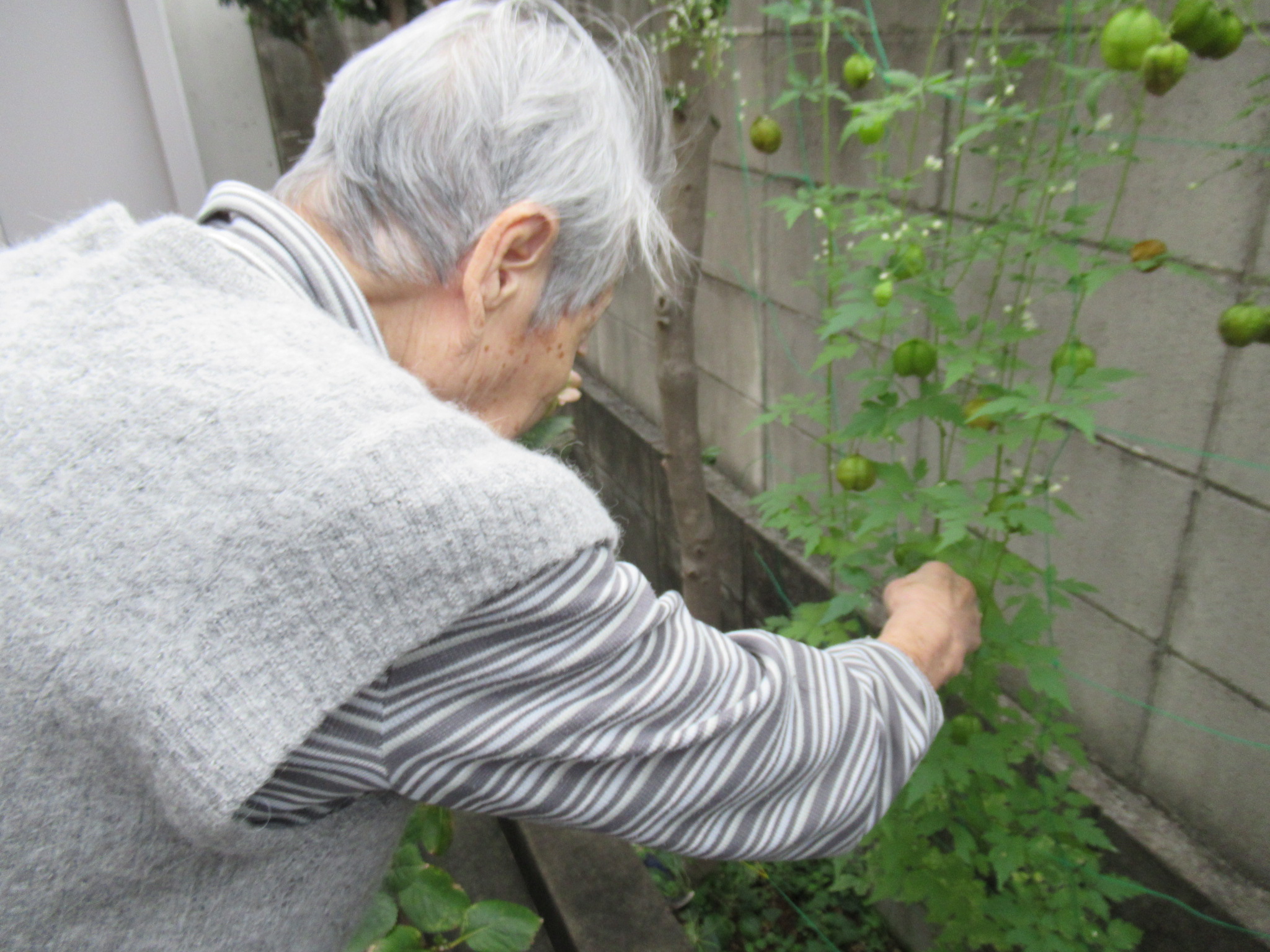 玄関に咲いていた、朝顔とフウセンカズラの種を収穫しました。