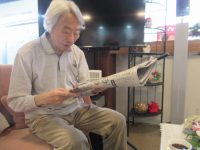 今日は日曜日で来客者もいないので、一階ロビーでコーヒーを飲みながらゆっくり新聞を読んでいらっしゃいました。
