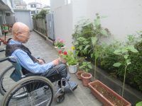 久しぶりに外にも出られ、庭先の向日葵・朝顔もご覧になりました。