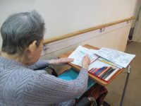 ぬり絵でも朝顔を塗ったり、とうもろこし、水着の女の子などきれいに塗っていらっしゃいました。