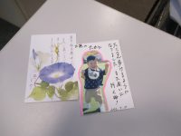 ご家族様から暑中お見舞いのハガキと曾孫さんの写真が貼ってあるハガキが届きました。