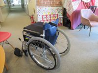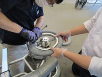 施設長がリクライニング車椅子のタイヤ交換をしました。