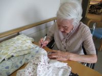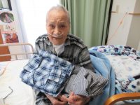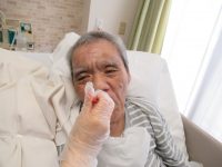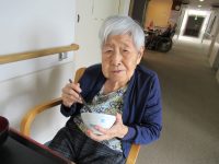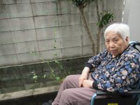 雨が上がったので玄関先に入居者様と出てみると、朝顔が咲いていました。
