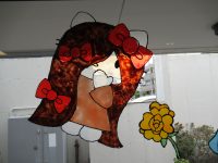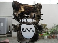 玄関先の窓ガラスにキティちゃんが飾ってあります。