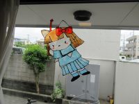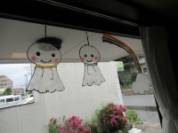 玄関先の窓ガラスに「父の日」と「てるてる坊主」を飾りました。