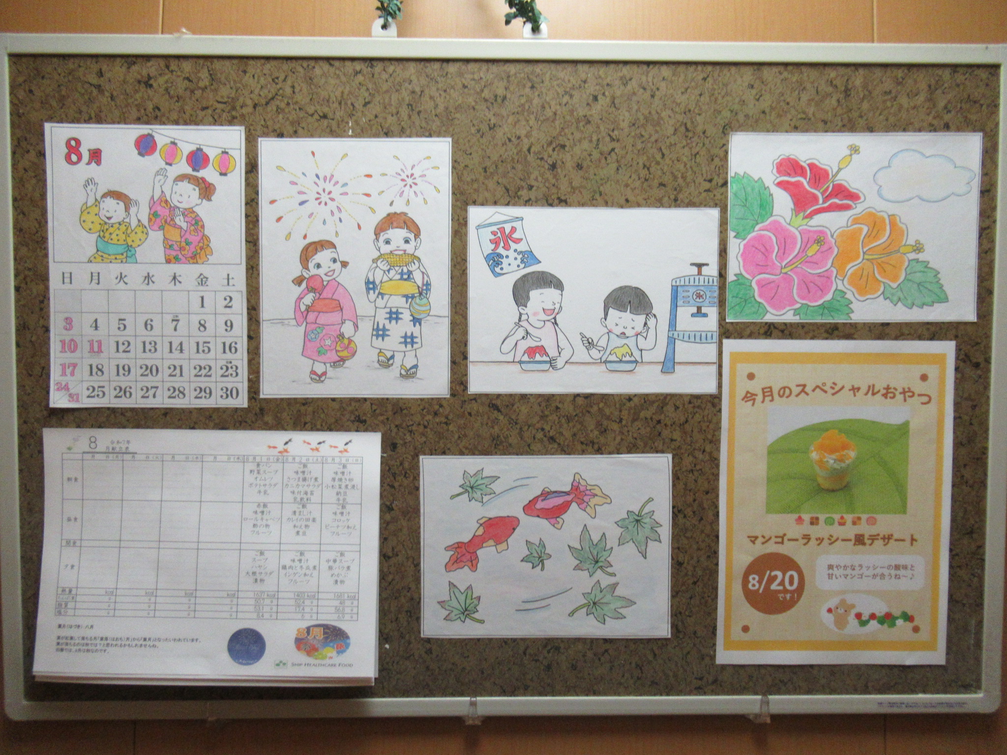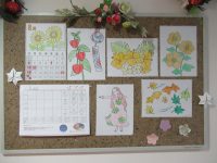 今月も、皆様が一生懸命ぬってくださった作品を飾りました。