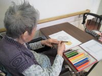 8月に飾るぬり絵を皆様一生懸命ぬっていらっしゃいました。