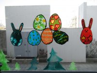春らしく、桜やチューリップ、イースターのかざりが飾ってあります。