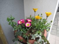 黄色い花が、「アフリカキンセンカ」ちょっと見えずらいですが隣に「はなかんざし」を植えました。
