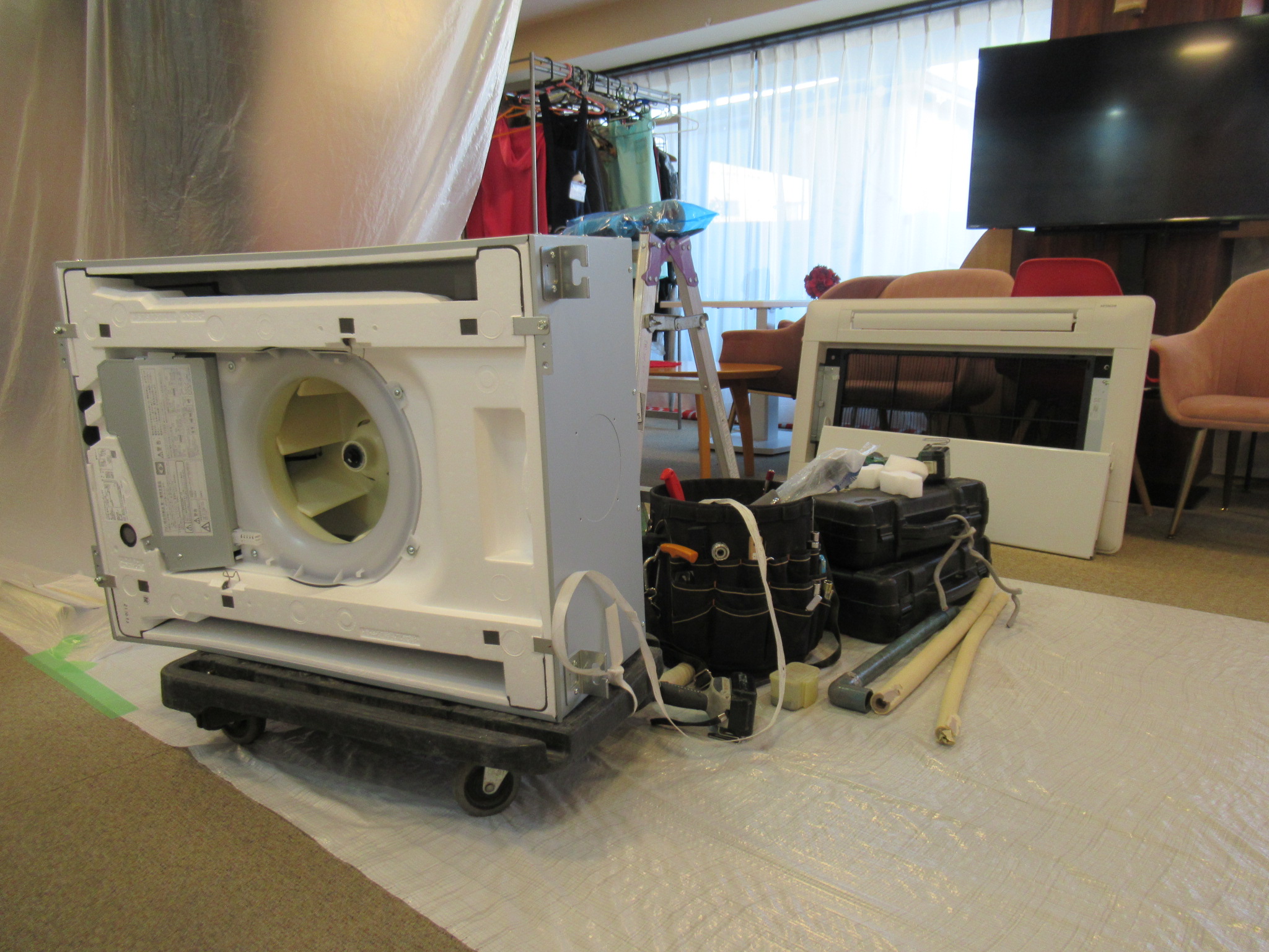 一階ロビーのエアコンが壊れてしまったので新しくなりました。