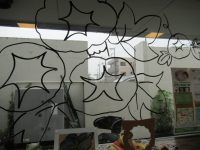 玄関の飾りを、紫陽花から朝顔に替えています。