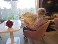 さっそく、羽織ってロビーで新聞を読んだり、お茶会に参加されていらっしゃいました。
