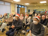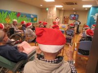 今回は、代表で一番元気なOさんがトナカイになり、他の皆様30名はサンタになりきって楽しみました。
