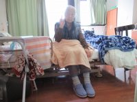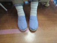Nさんは、冬用の靴下。ゴムが入っていない柔らか素材。さっそく履いてみました。「暖かくてうれし!!」と喜んでいらっしゃいました。