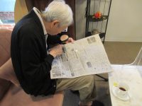 kさんは、朝ラウンジで新聞を読んでいらっしゃいます。