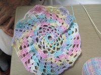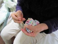 一人時間にコツコツレース編みをしているEさん。