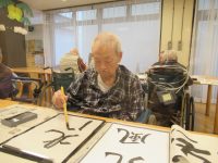 入居者様も喜んでいらっしゃいましたが、施設前を通った子供達も興味深々で見てました。