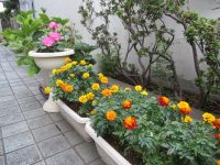 夏の終わりに植えた、マリーゴールド、観賞用唐辛子、ゼラニュームもきれいに咲いていて玄関先は華やかです。