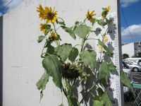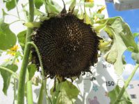 背丈が2mを超え、最初に咲いた向日葵に種が出来てきました。