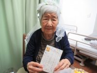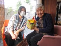 綺麗なお花やお孫さんの写真をもらって喜んでいらっしゃいました。
