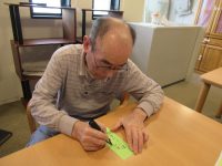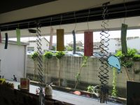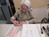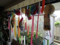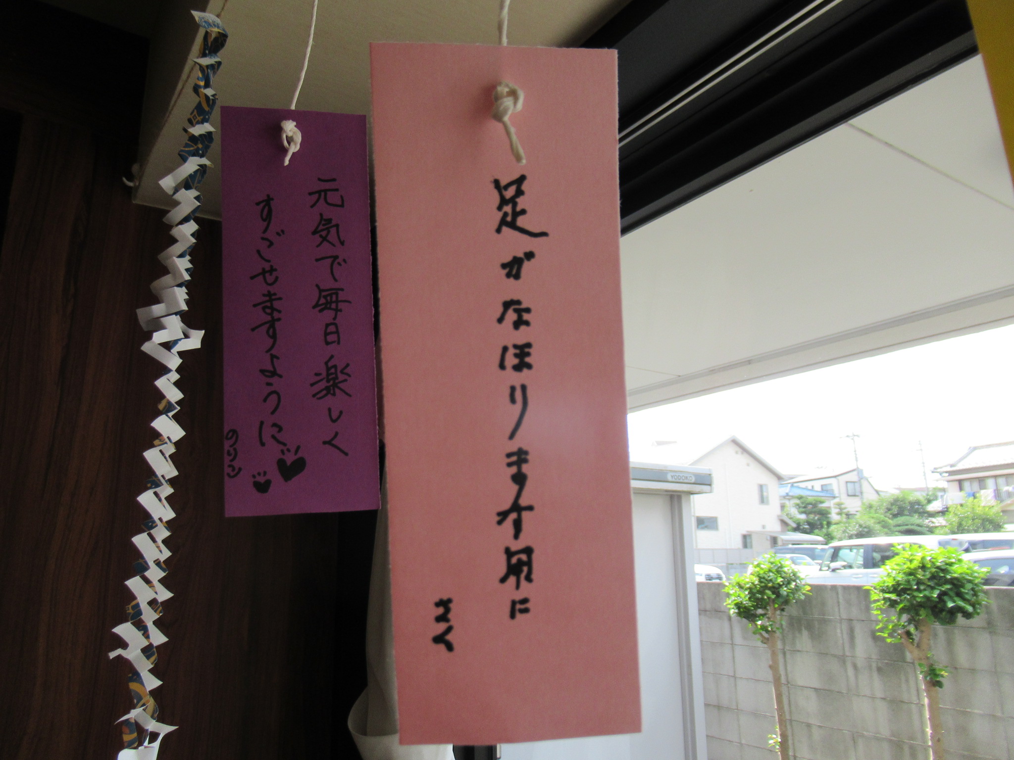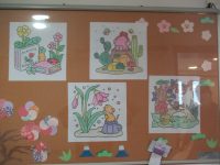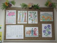今月は、七夕の絵や果物などのぬり絵をかざりました。