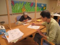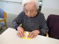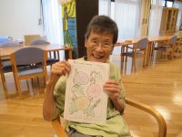 室内で、絵本を読んだり、折紙で向日葵を作ったり、ぬり絵をしました。