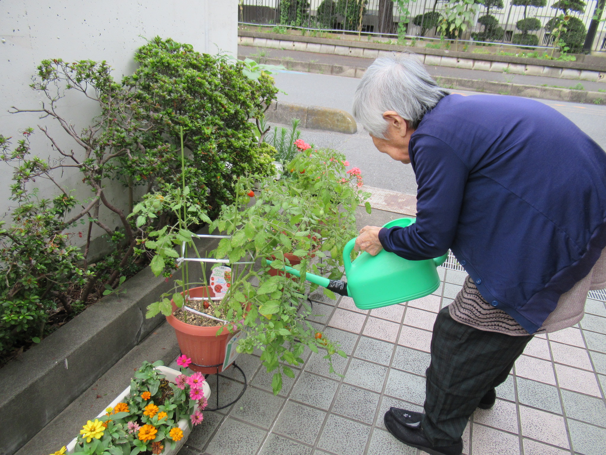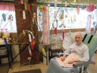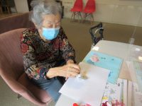 入居者様と一緒に3階のエントランスの壁飾りを作りました。