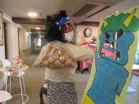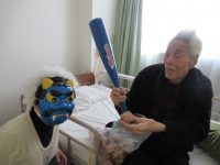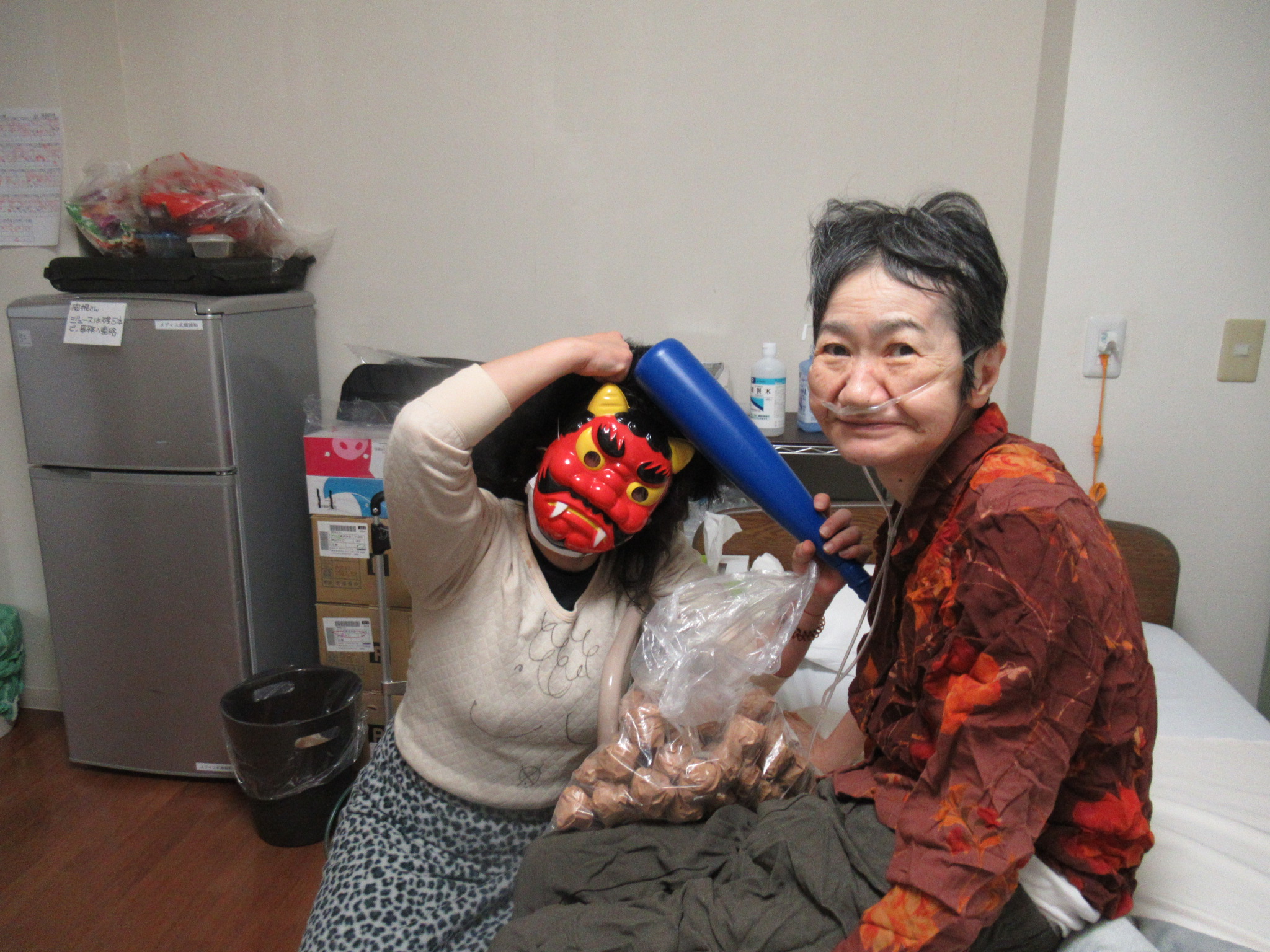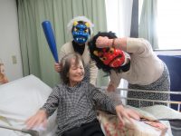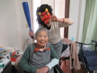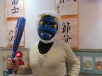 2月2日に鬼が出て、施設の皆さんを脅かしていました