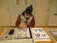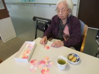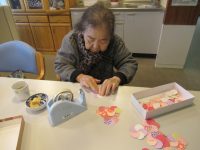 先日の鬼のお面に引き続き、館内装飾の小物作りを