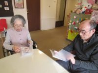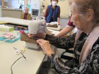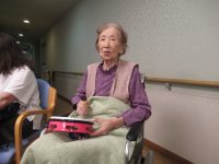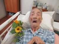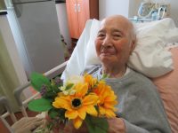 施設から、男性の入居者様に向日葵の飾りをプレゼントさせて頂きました。