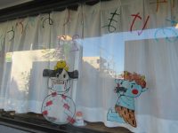 今はお正月飾りが貼ってあります。クリスマスツリーも作ってくれたのですが