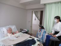 個別音楽療法で、全体のレクになかなか参加できない方のお部屋に