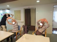おやつの時間にラウンジにいた皆様と体操をすることになりました