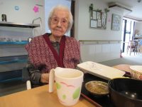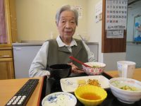 今日のランチは、炊き込みご飯・味噌汁・天ぷら・胡麻和えでした。