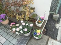 今日も寒かったです。施設の前の賑やかな✿達も・・・
