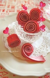 林檎の薔薇パイと真っ赤なぐるぐるグミ、どうです?