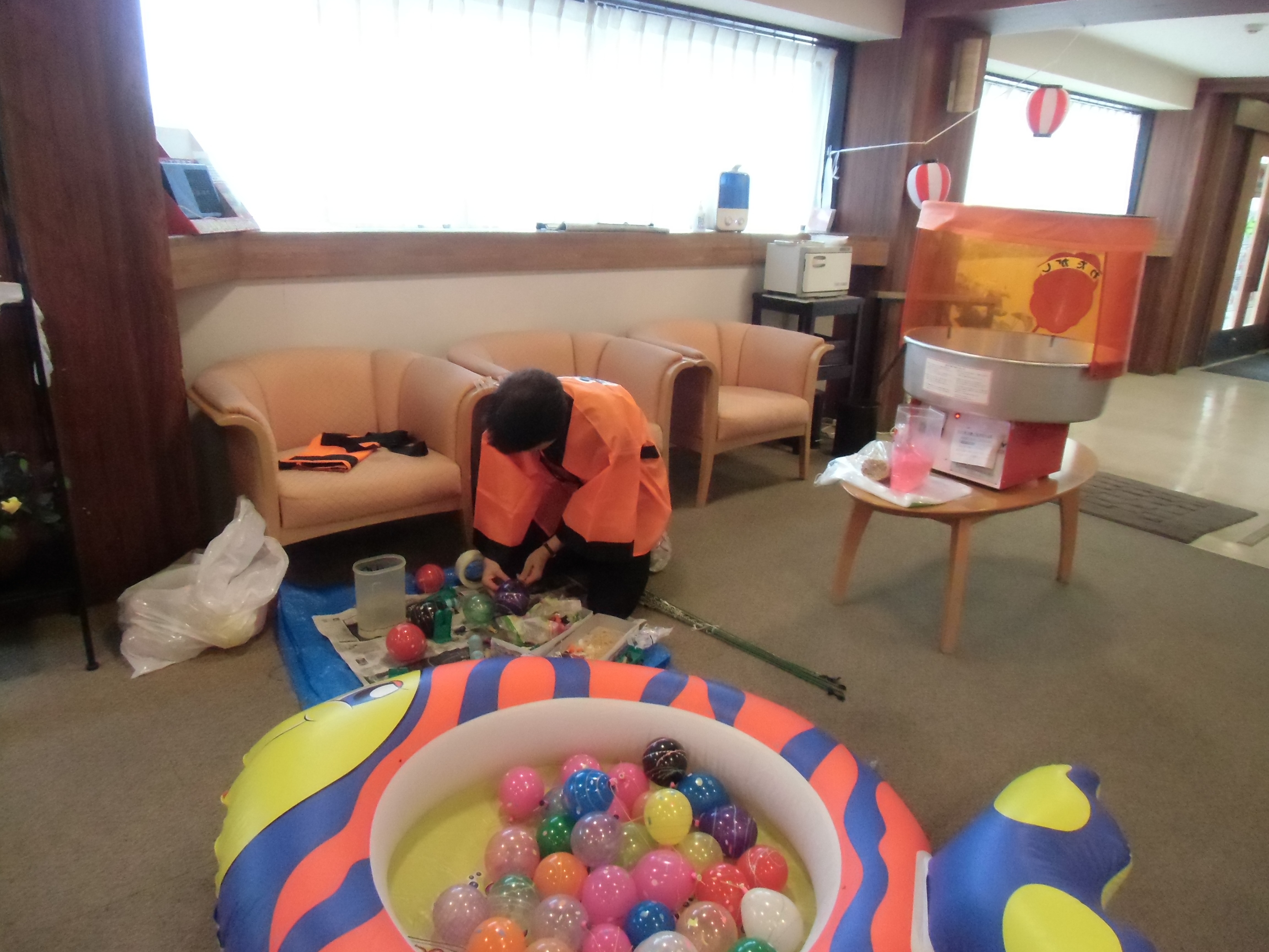 外部の方向けには、午前中1階のラウンジで綿あめとヨーヨーを