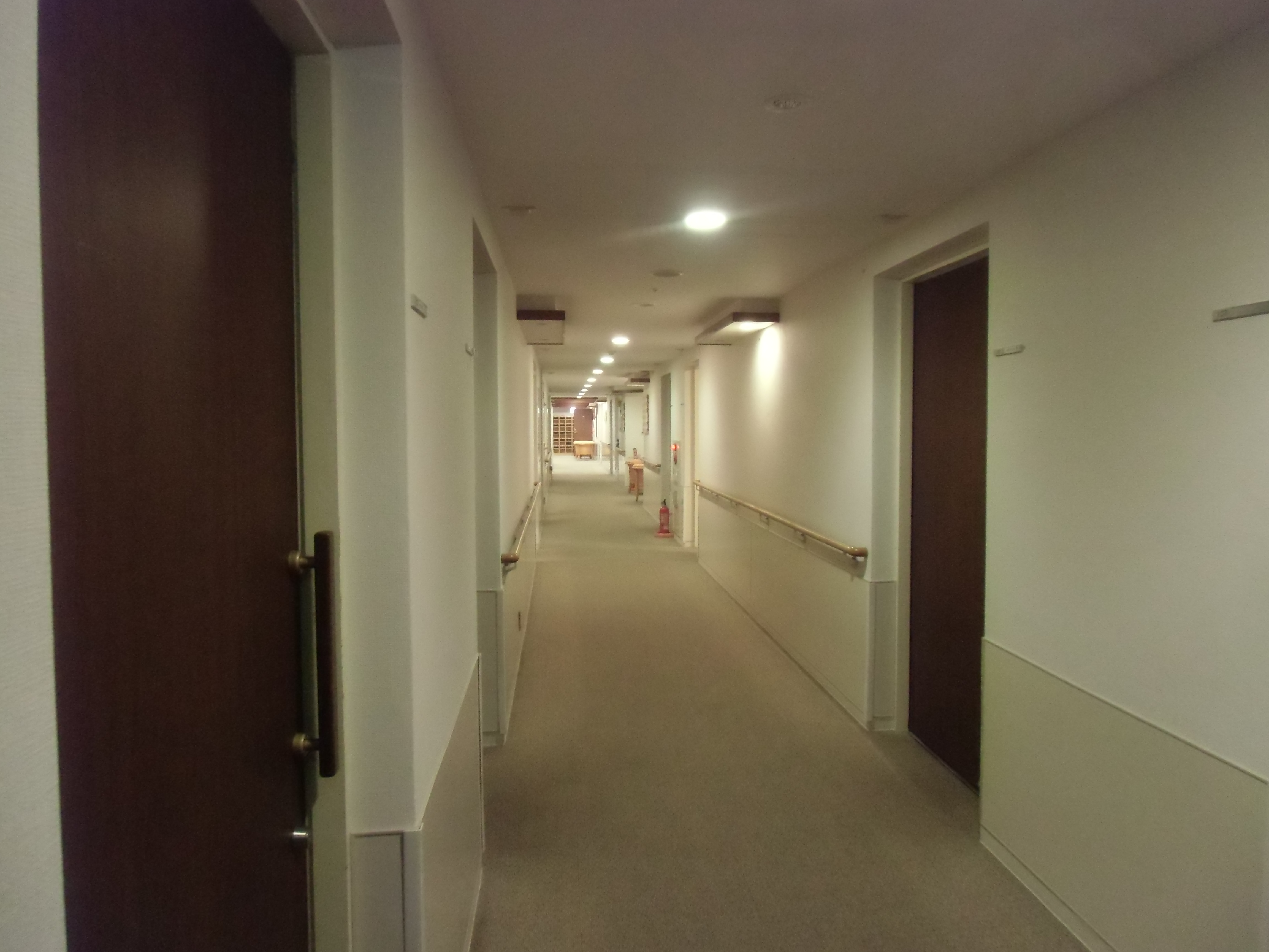 そして玄関の反対側から見る、夜の廊下が、なんだかとってもいい感じなのです。
